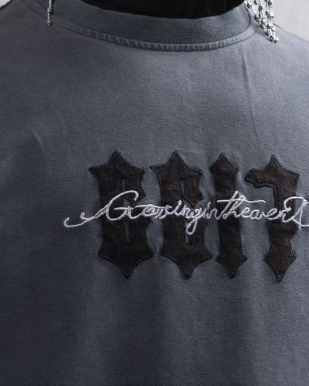 חולצת טי שירט לגברים ונשים בגזרת אוברסייז, בצבע אבן שעבר שטיפת אסיד – עם אמירה.